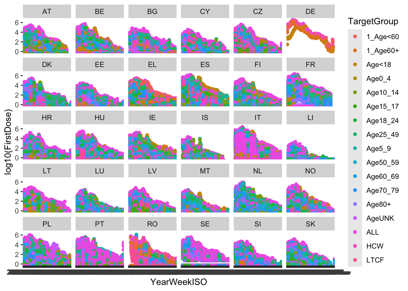 As you noticed, axis customization may entail adjust the limits with limits(), the axis expansion below and above those limits with expand(), and other aspects as the axis ticks with breaks(). We also can add/remove a legend with the argument guides().