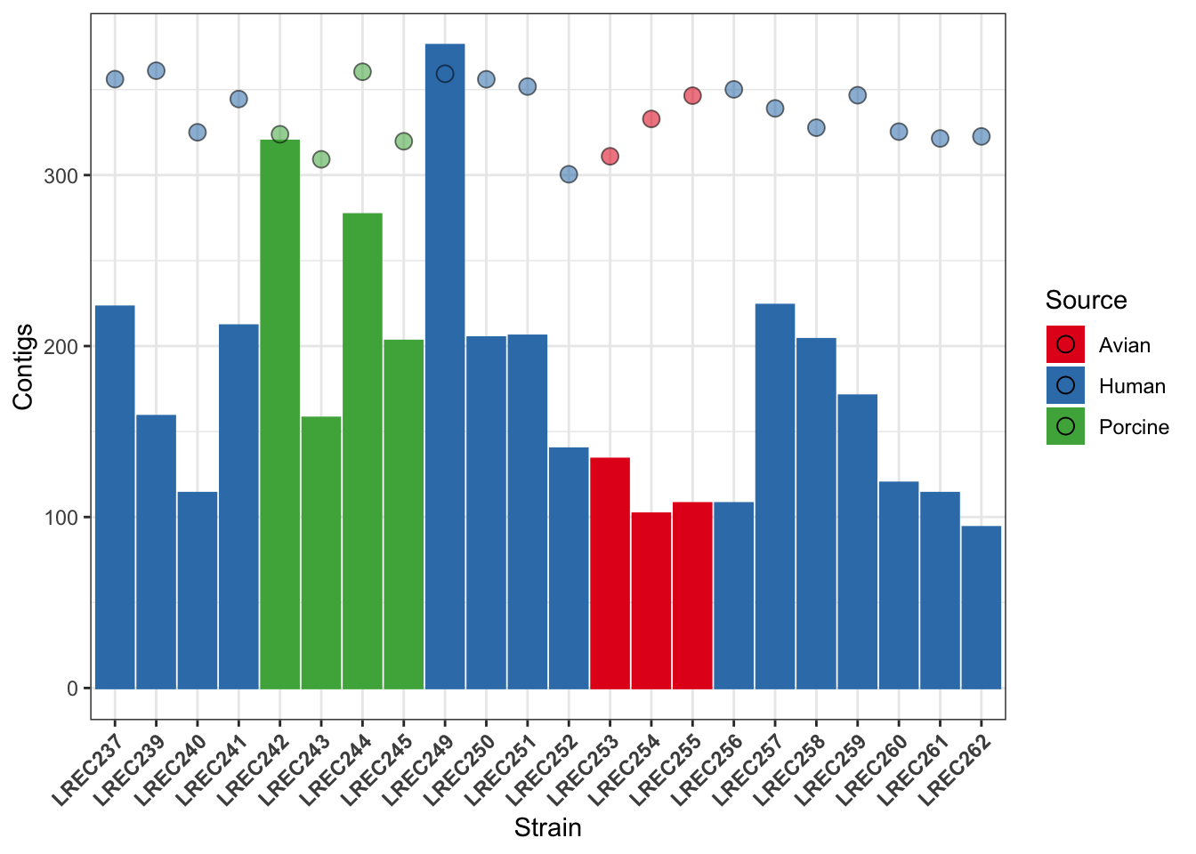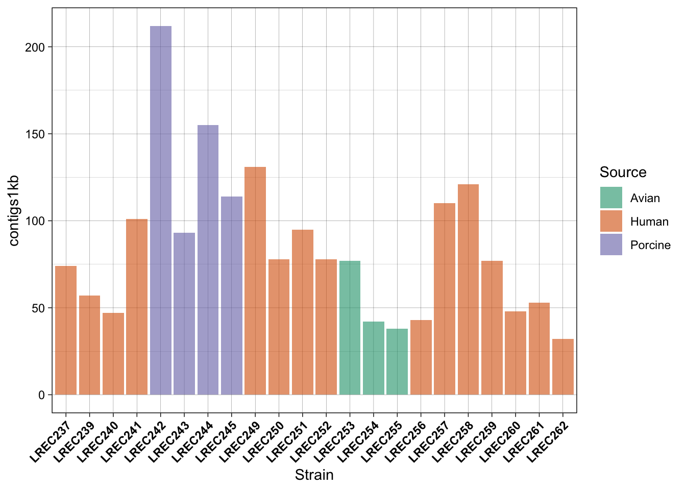 data: coli_genomes$contigs1kb and coli_genomes$Contigs