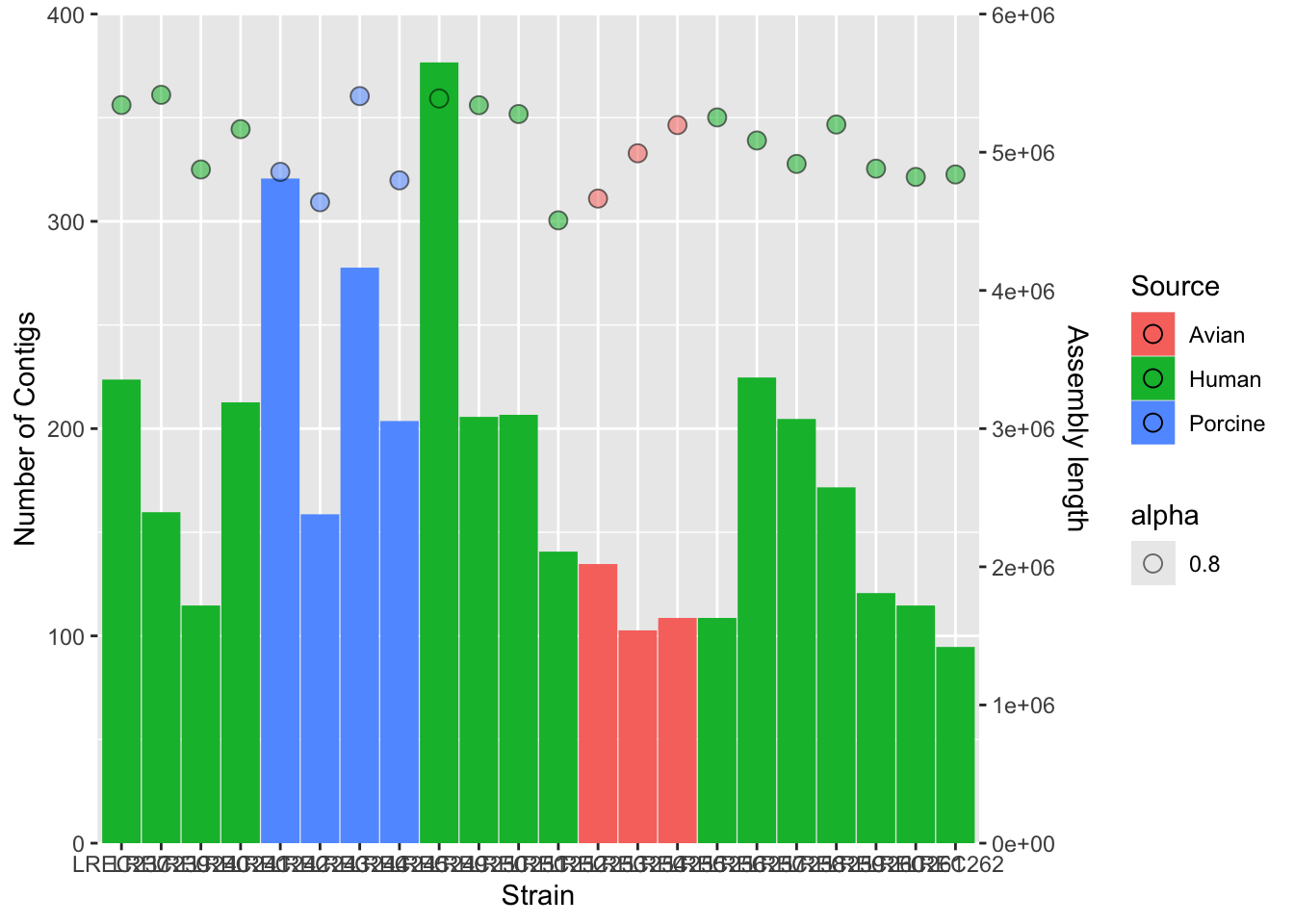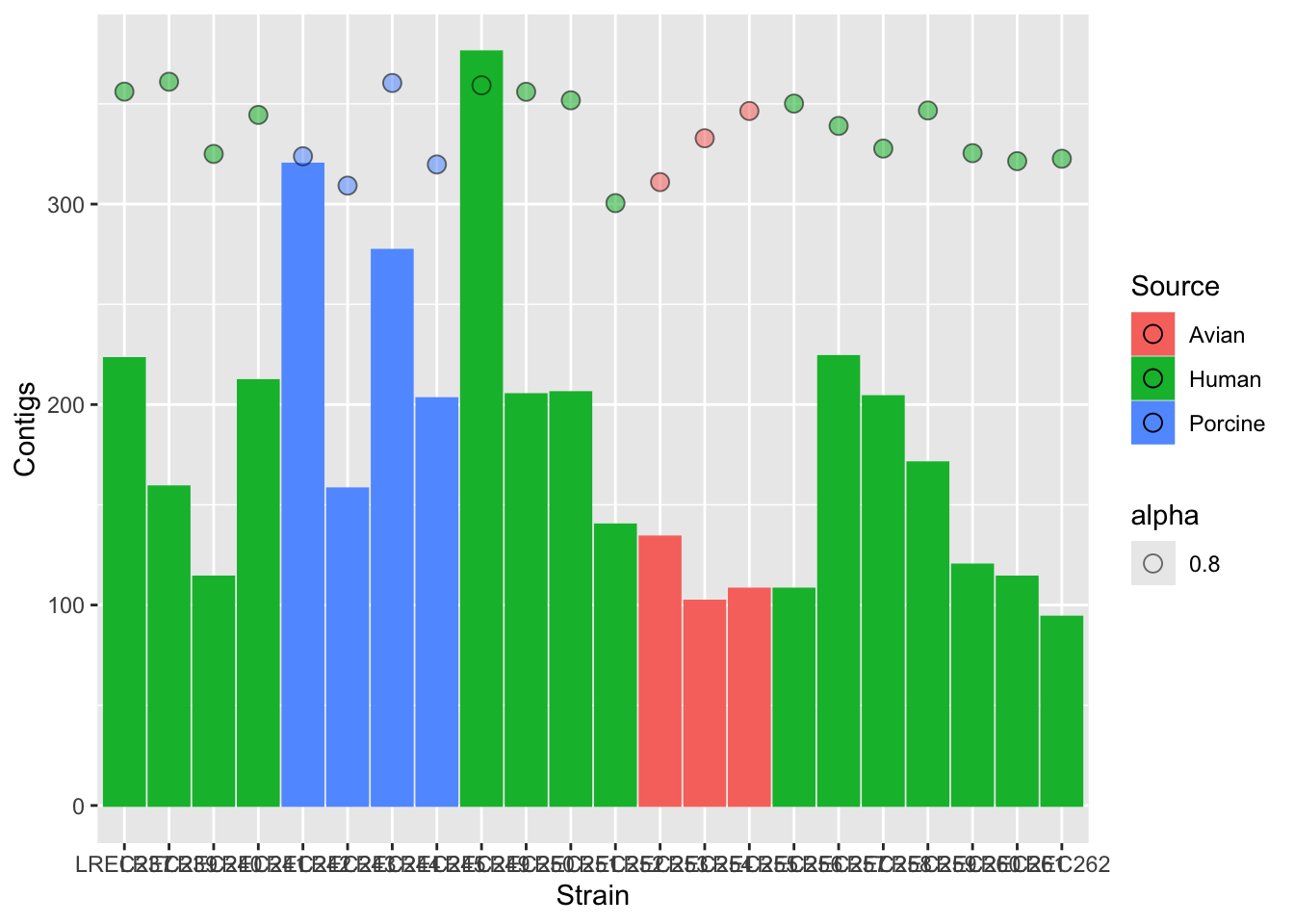 plots2b <- plots2 + geom_point(aes(x = Strain, y = Assembly_length/15000,